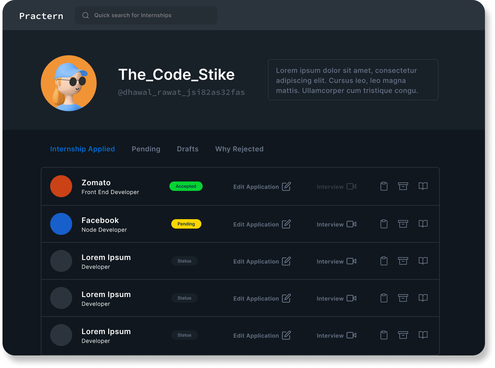 Practern matches the aspiring intern with the coolest global companies through life projects
